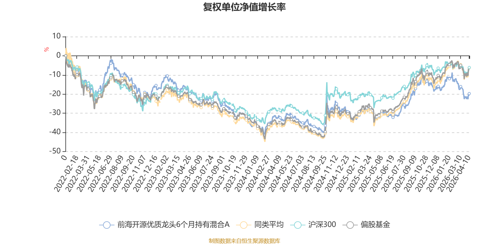 截至4月10日,前海开源优质龙头6个月持有混合A近三个月复权单位净值增长率为-8.40%,位于同类可比基金252/265;近半年复权单位净值增长率为-8.70%,位于同类可比基金252/265;近一年复权单位净值增长率为19.94%,位于同类可比基金222/265;近三年复权单位净值增长率为-4.21%,位于同类可比基金224/261。