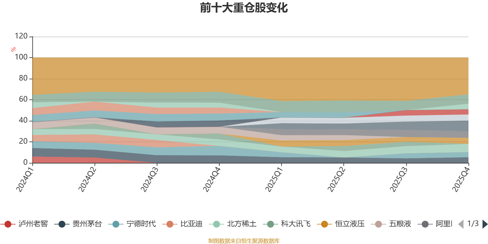 该基金持股集中度较高。截至2025年末,基金十大重仓股分别是三花智控、腾讯控股、北方稀土、阿里巴巴-W、恒立液压、汇川技术、中国中免、贵州茅台、宁德时代、亿纬锂能。