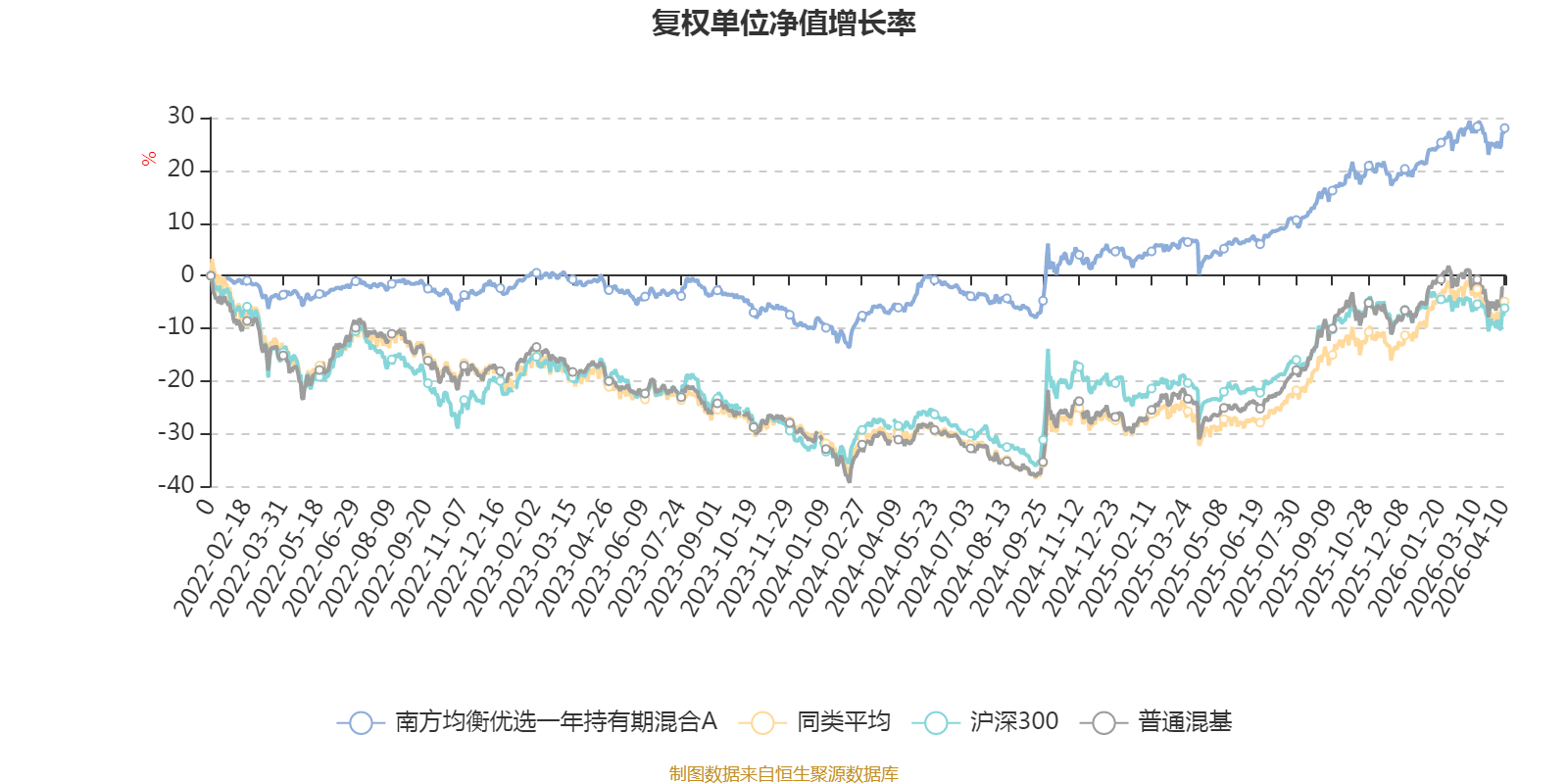 截至4月10日,南方均衡优选一年持有期混合A近三个月复权单位净值增长率为3.15%,位于同类可比基金38/134;近半年复权单位净值增长率为6.60%,位于同类可比基金53/134;近一年复权单位净值增长率为24.72%,位于同类可比基金70/134;近三年复权单位净值增长率为29.04%,位于同类可比基金34/126。