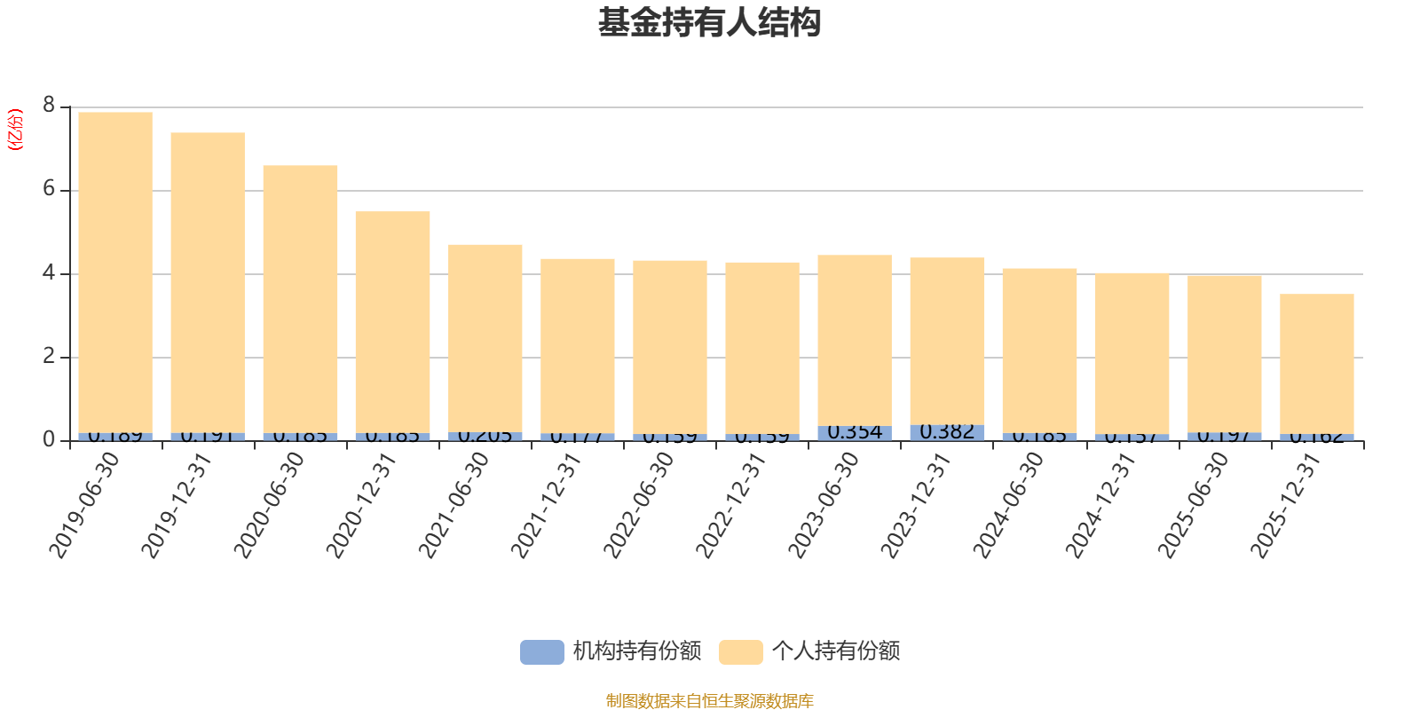 截至2025年12月31日,基金持有人共计4.02万户,合计持有3.51亿份。其中管理人员工持有34.54万份,占比0.10%,机构持有份额占比4.61%,个人投资者占比95.39%。