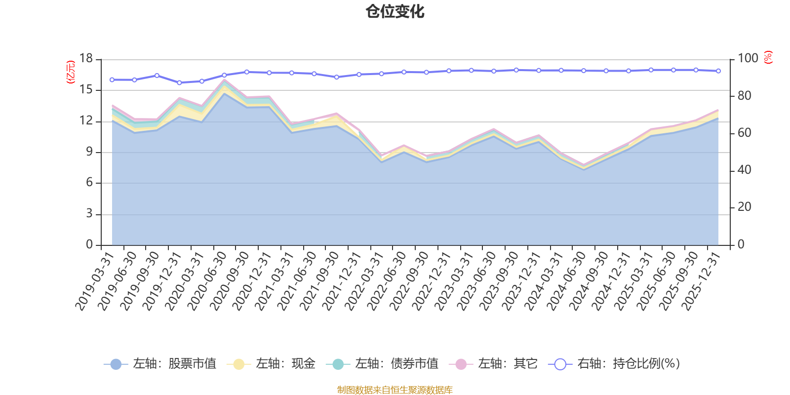 据定期报告数据统计,近三年平均股票仓位为93.97%,同类平均为67.52%。2025年一季度末基金达到94.25%的最高仓位,2019年末最低,为87.39%。