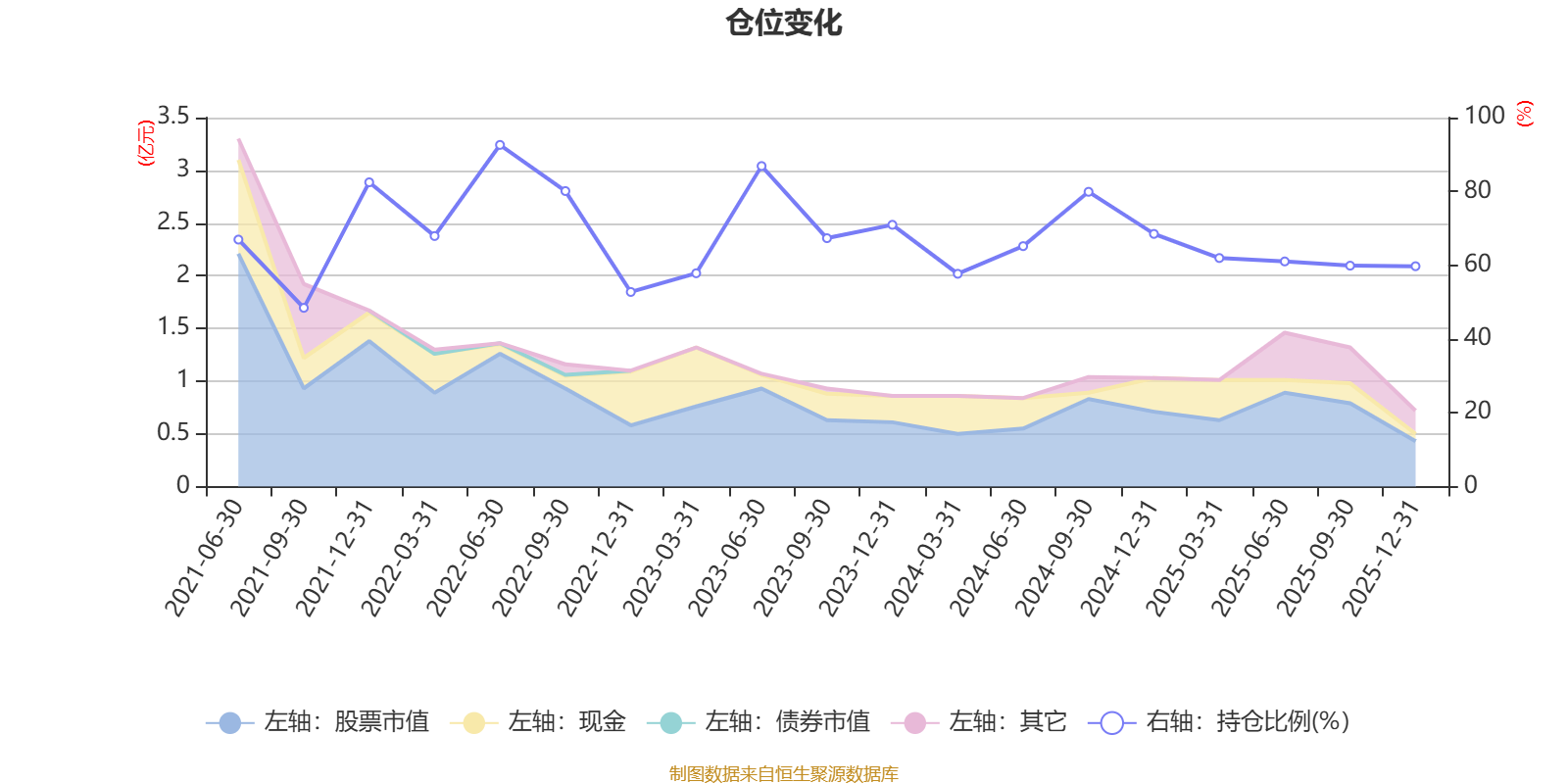 据定期报告数据统计,近三年平均股票仓位为66.39%,同类平均为72.57%。2022年上半年末基金达到92.6%的最高仓位,2021年三季度末最低,为48.44%。