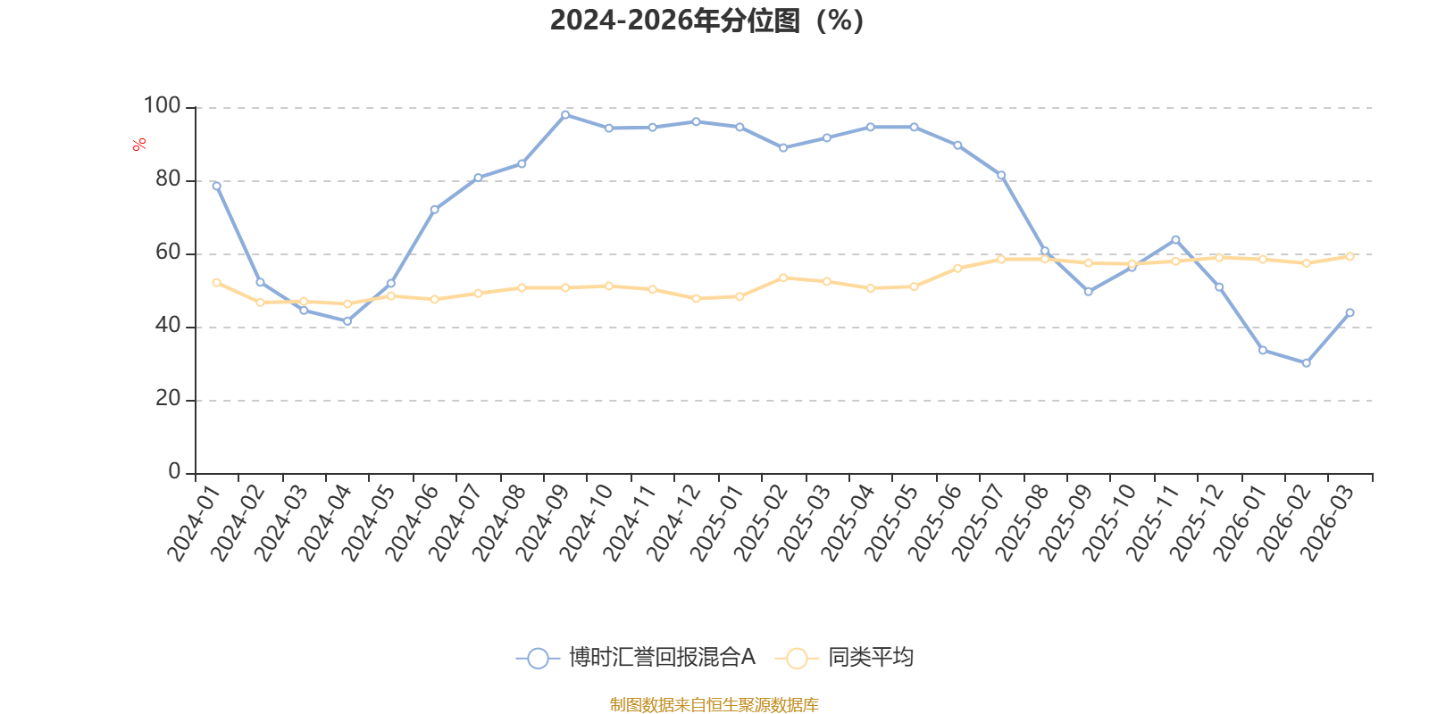 通过所选区间该基金净值增长率分位图,可以观察该基金与同类基金业绩比较情况。图为坐标原点到区间内某时点的净值增长率在同类基金中的分位数。