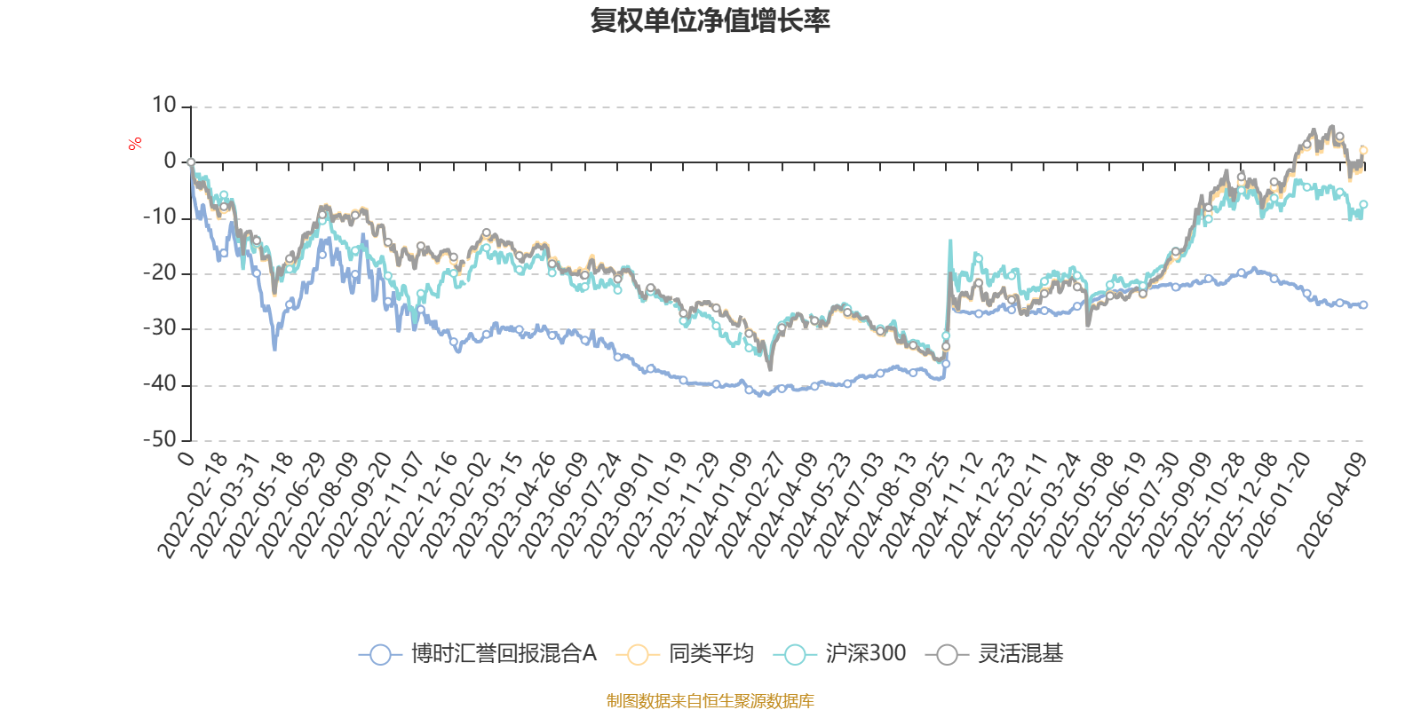 截至4月9日,博时汇誉回报混合A近三个月复权单位净值增长率为-3.84%,位于同类可比基金932/1287;近半年复权单位净值增长率为-5.61%,位于同类可比基金1067/1286;近一年复权单位净值增长率为-0.92%,位于同类可比基金1256/1286;近三年复权单位净值增长率为4.80%,位于同类可比基金858/1286。