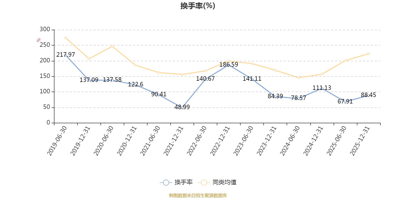 截至2025年12月31日,基金最近一年换手率约156.16%,持续低于同类均值。