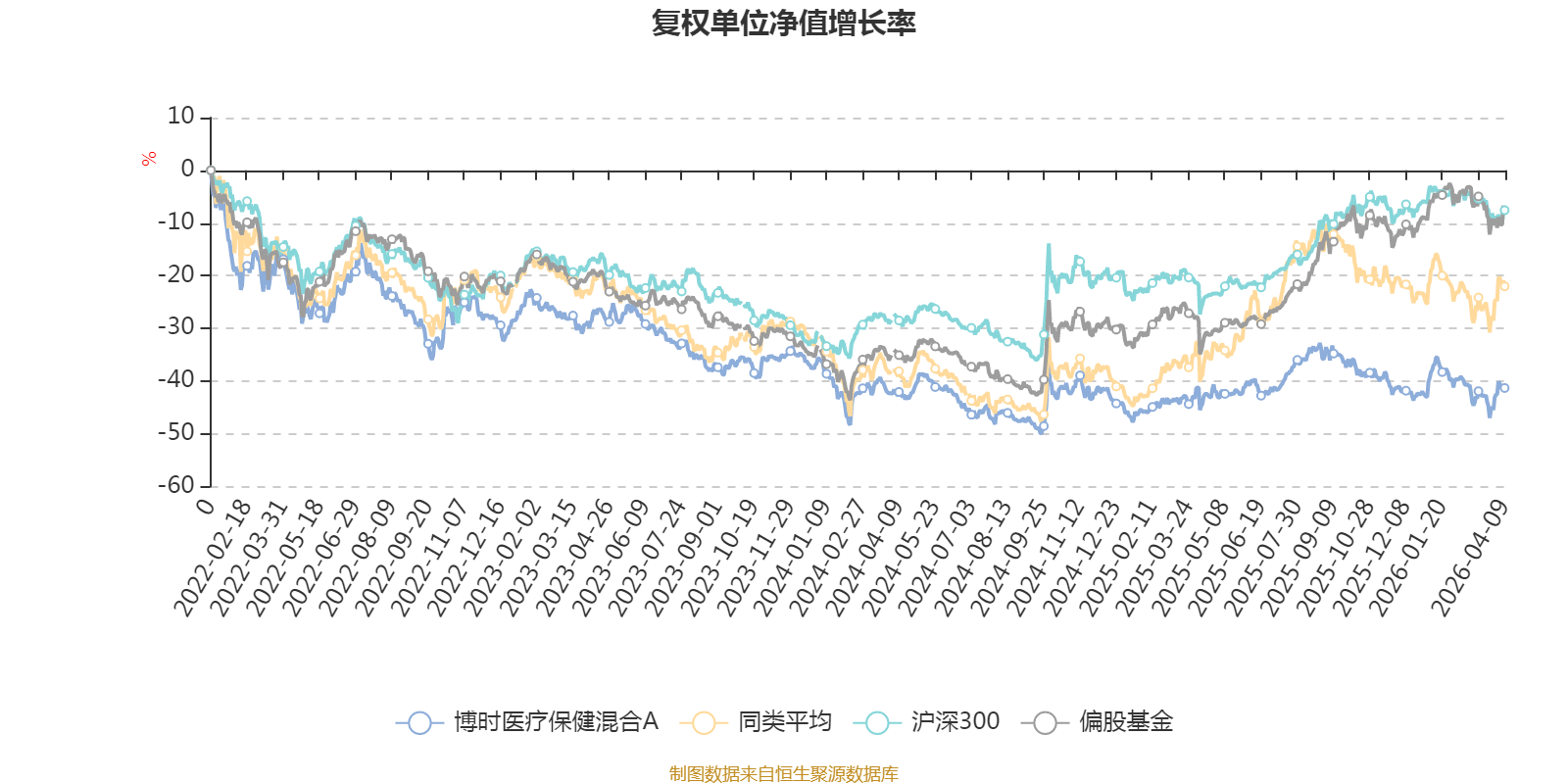 截至4月9日,博时医疗保健混合A近三个月复权单位净值增长率为-6.85%,位于同类可比基金60/106;近半年复权单位净值增长率为-8.50%,位于同类可比基金45/106;近一年复权单位净值增长率为5.30%,位于同类可比基金96/104;近三年复权单位净值增长率为-19.59%,位于同类可比基金67/78。