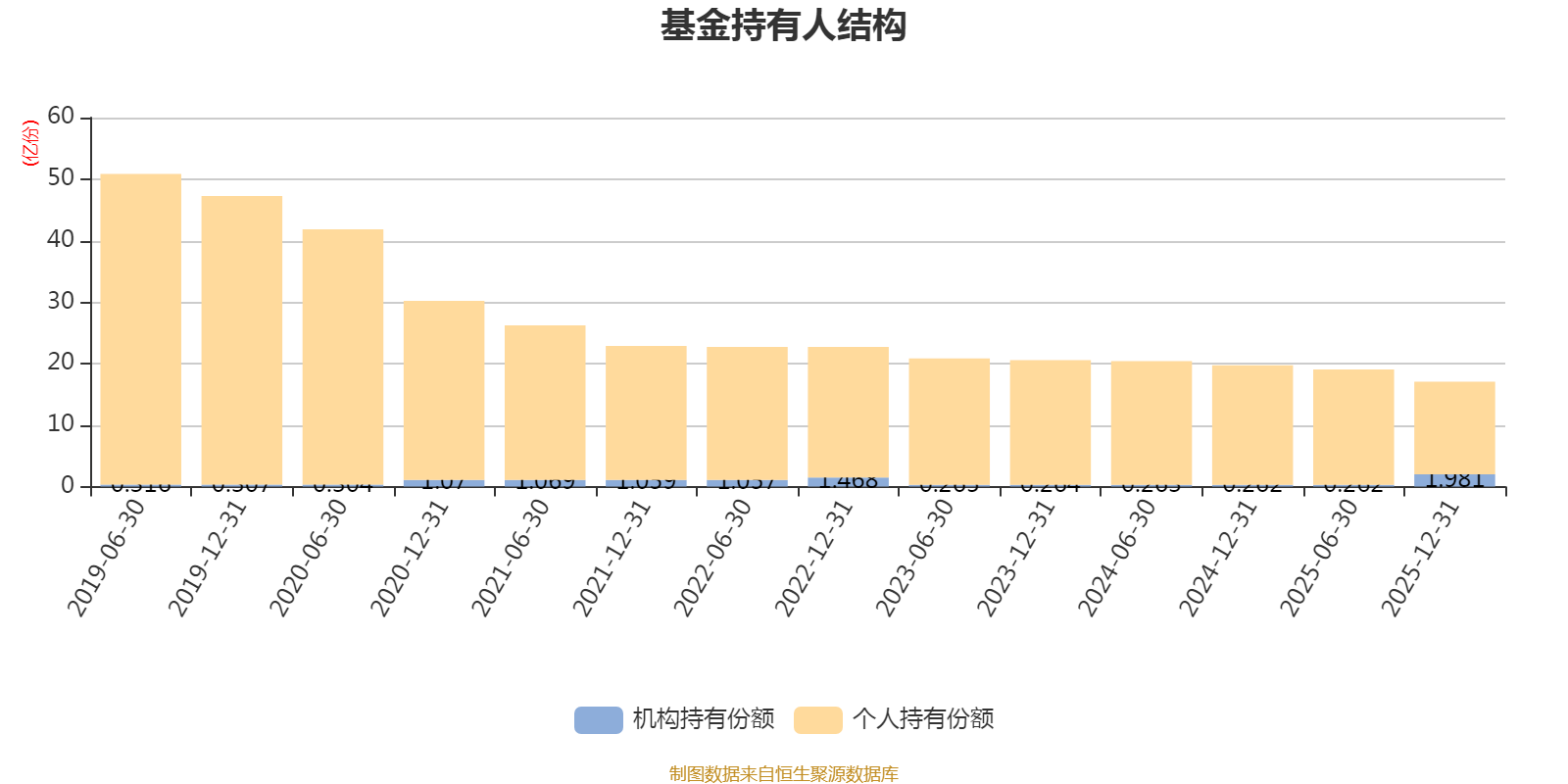 截至2025年12月31日,基金持有人共计9.55万户,合计持有17.05亿份。其中管理人员工持有6.6万份,机构持有份额占比11.62%,个人投资者占比88.38%。