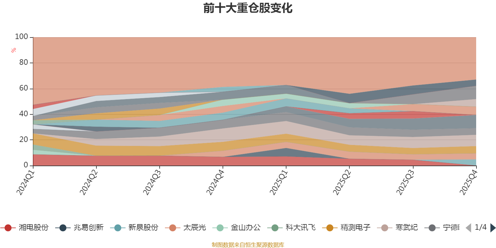 截至2025年末,基金十大重仓股分别是中际旭创、东山精密、寒武纪、新易盛、金盘科技、精测电子、宁德时代、胜宏科技、新泉股份、太辰光。