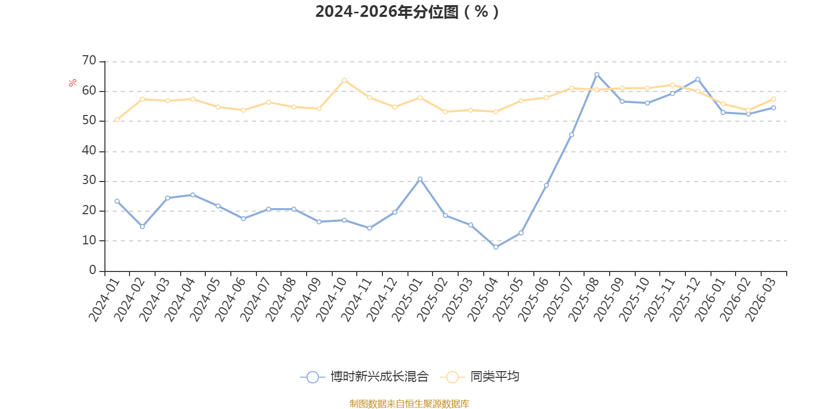 通过所选区间该基金净值增长率分位图,可以观察该基金与同类基金业绩比较情况。图为坐标原点到区间内某时点的净值增长率在同类基金中的分位数。