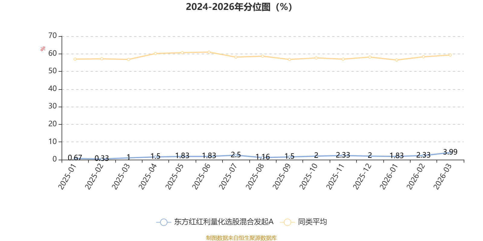 通过所选区间该基金净值增长率分位图,可以观察该基金与同类基金业绩比较情况。图为坐标原点到区间内某时点的净值增长率在同类基金中的分位数。