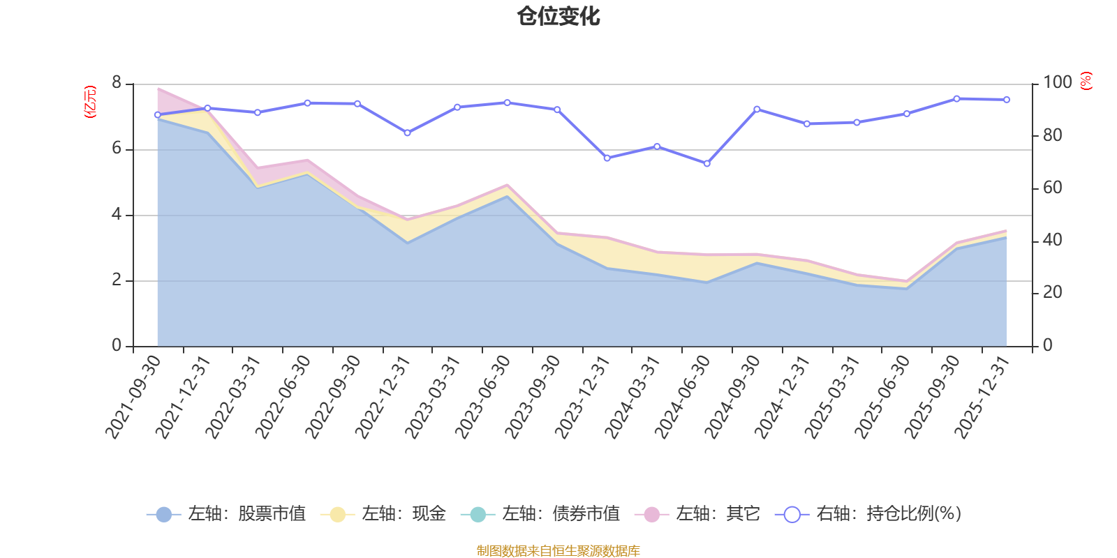 据定期报告数据统计,近三年平均股票仓位为85.7%,同类平均为85.83%。2025年三季度末基金达到94.27%的最高仓位,2024年上半年末最低,为69.61%。