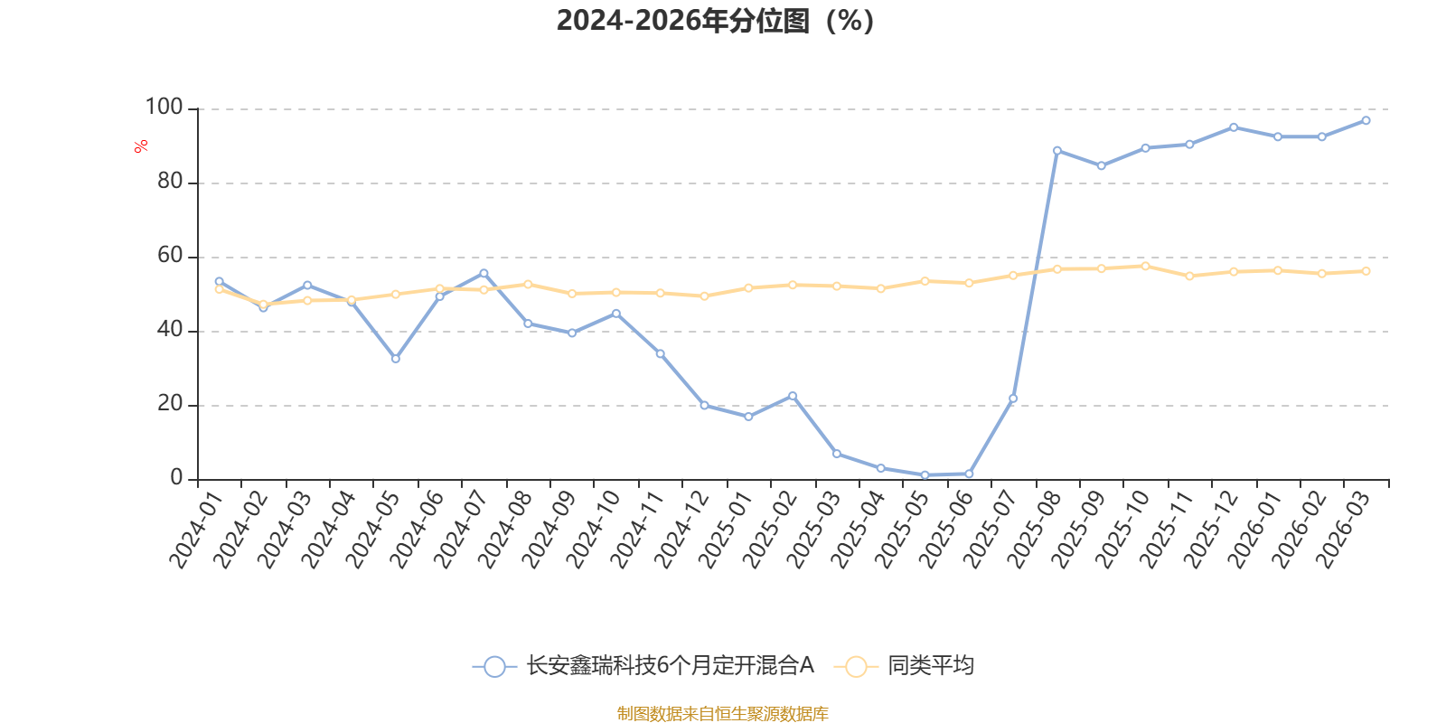 通过所选区间该基金净值增长率分位图,可以观察该基金与同类基金业绩比较情况。图为坐标原点到区间内某时点的净值增长率在同类基金中的分位数。