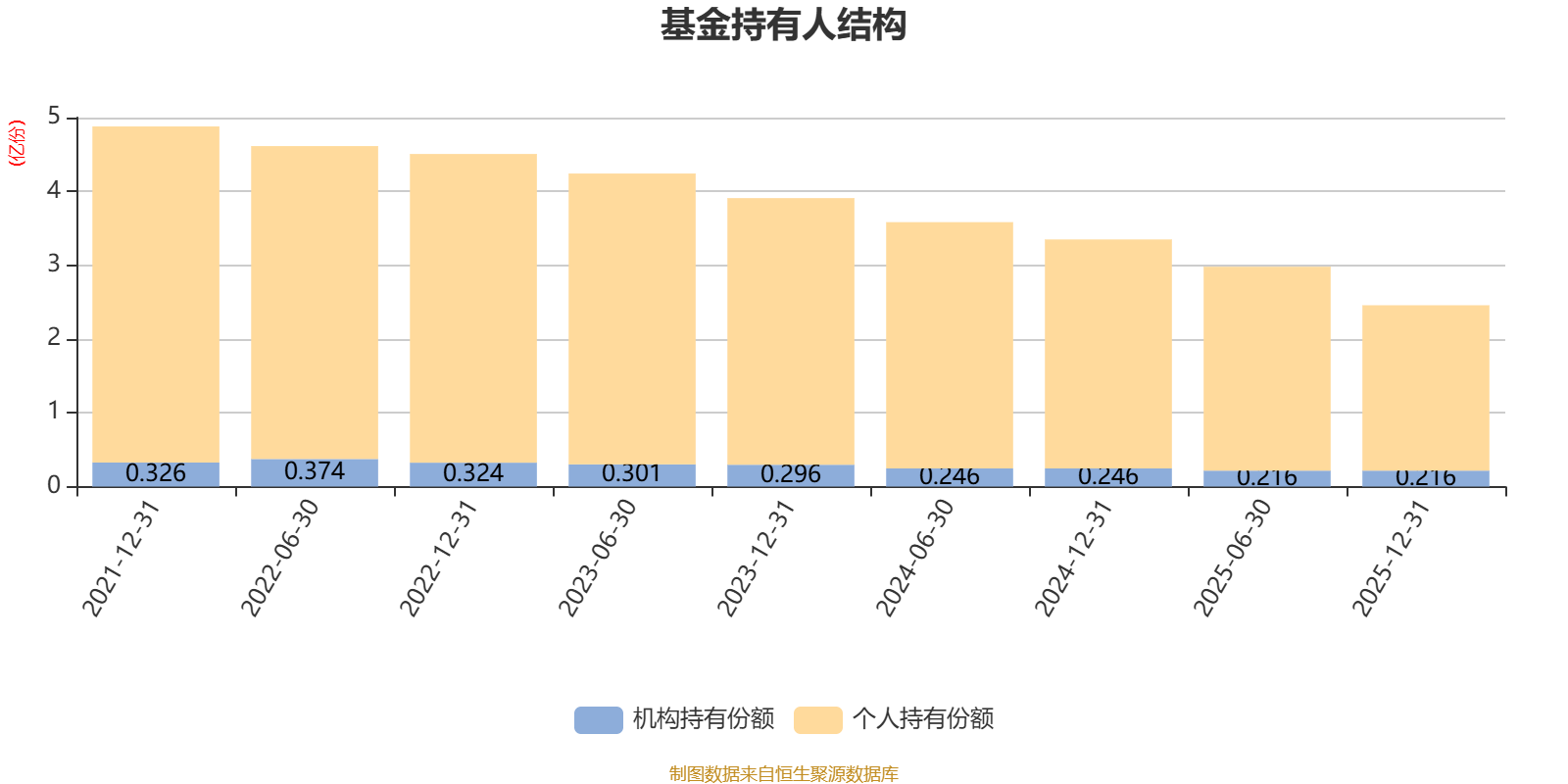 截至2025年12月31日,基金持有人共计3647户,合计持有2.46亿份。其中管理人员工持有5.14万份,占比0.02%,机构持有份额占比8.80%,个人投资者占比91.20%。