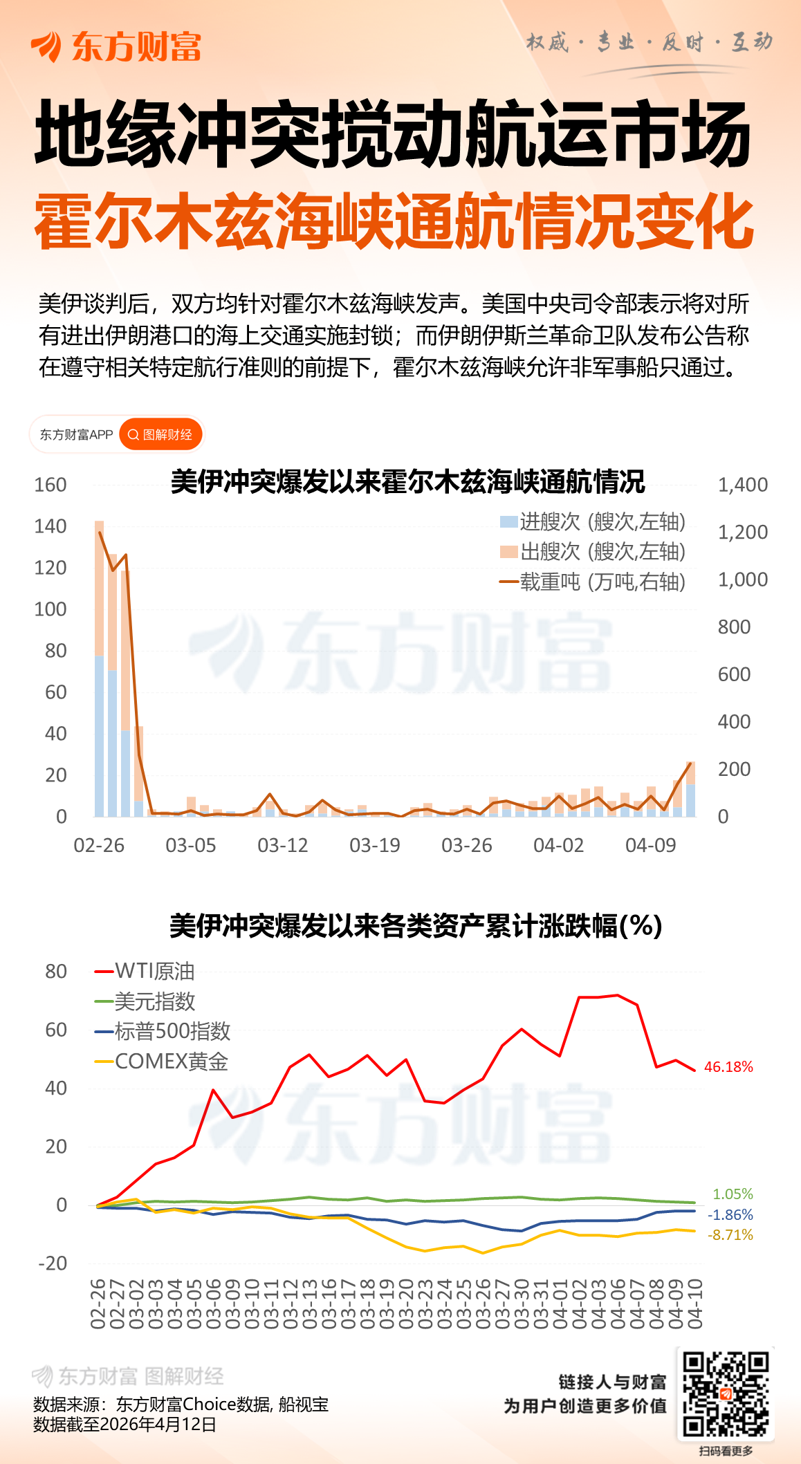 详情显示,在特朗普宣布“封锁令”前,11日通过霍尔木兹海峡的油轮数量一度略有增加,12日海峡航运量虽有所减少,但仍可通行。然而,“特朗普宣布实施海上封锁后,所有交通似乎都已停止”,至少两艘原本正驶出海峡的船只已经掉头。