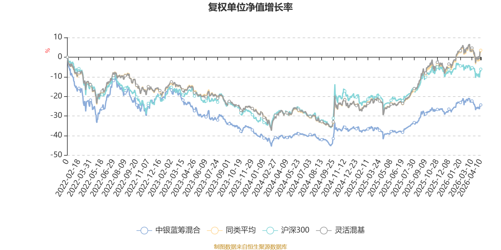 截至4月10日,中银蓝筹混合近三个月复权单位净值增长率为-1.59%,位于同类可比基金811/1287;近半年复权单位净值增长率为3.19%,位于同类可比基金685/1286;近一年复权单位净值增长率为25.12%,位于同类可比基金752/1286;近三年复权单位净值增长率为-1.41%,位于同类可比基金1017/1286。