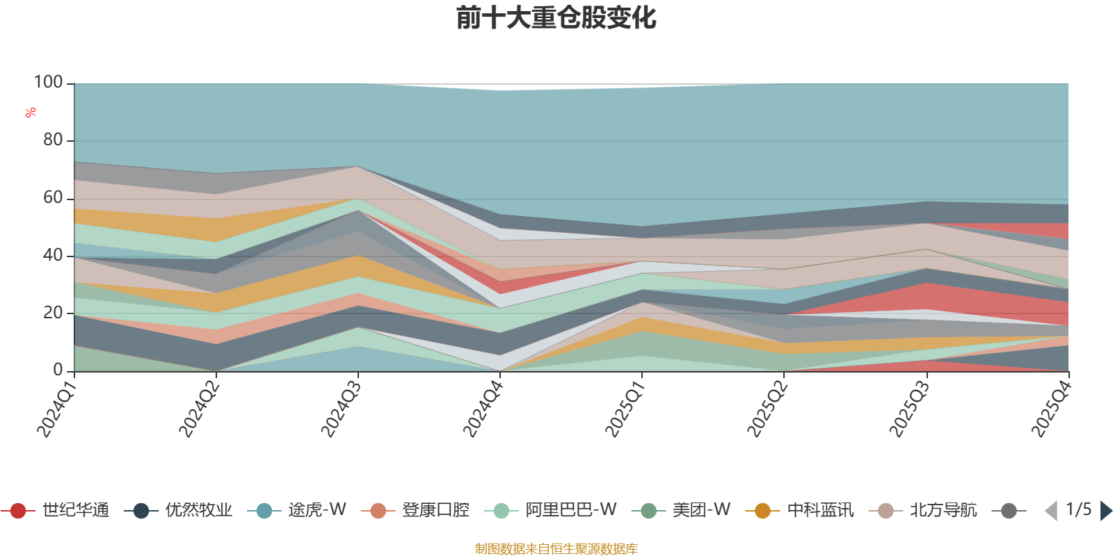 该基金持股集中度较高。截至2025年末,基金十大重仓股分别是皖仪科技、优然牧业、寒武纪、中芯国际、信维通信、宁德时代、贵州茅台、国睿科技、香农芯创、登康口腔。