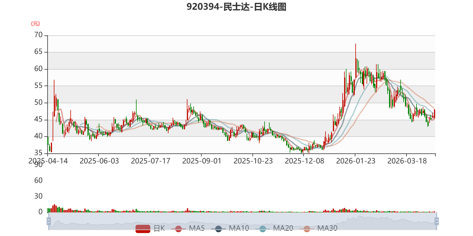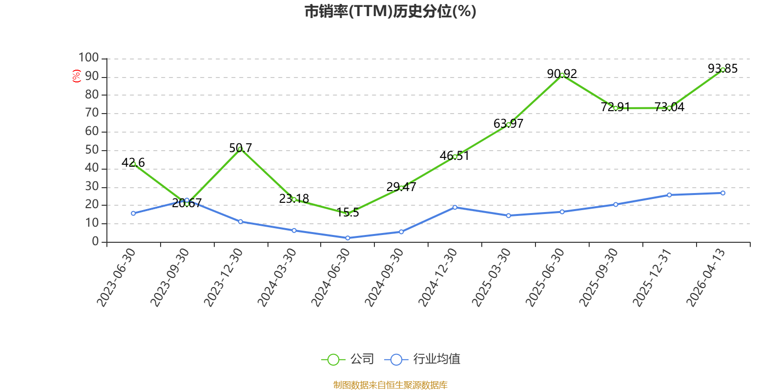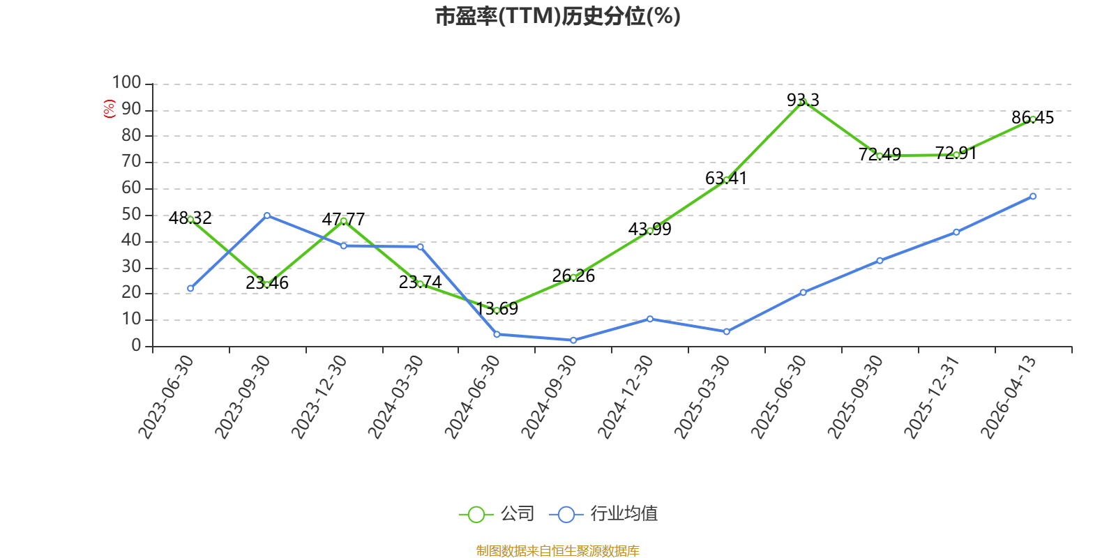 以4月13日收盘价计算,民士达目前市盈率(TTM)约为54.99倍,市净率(LF)约8.31倍,市销率(TTM)约15.86倍。