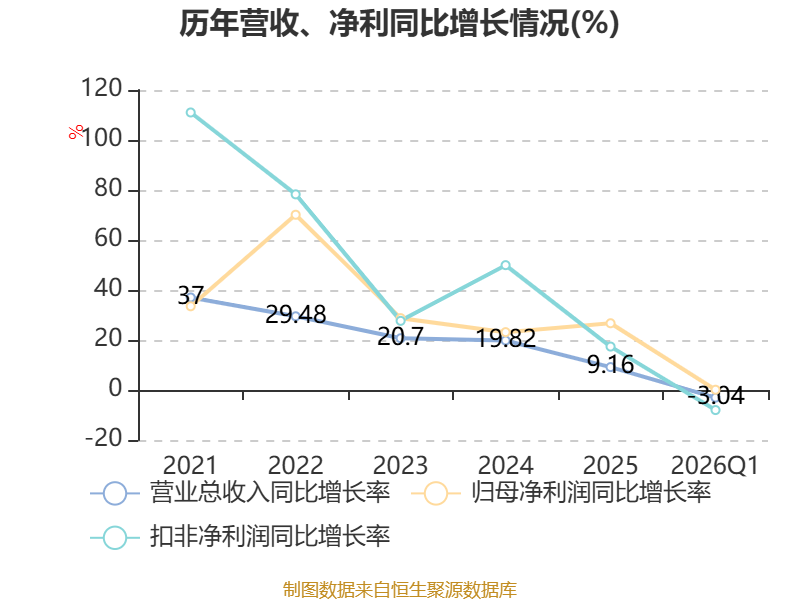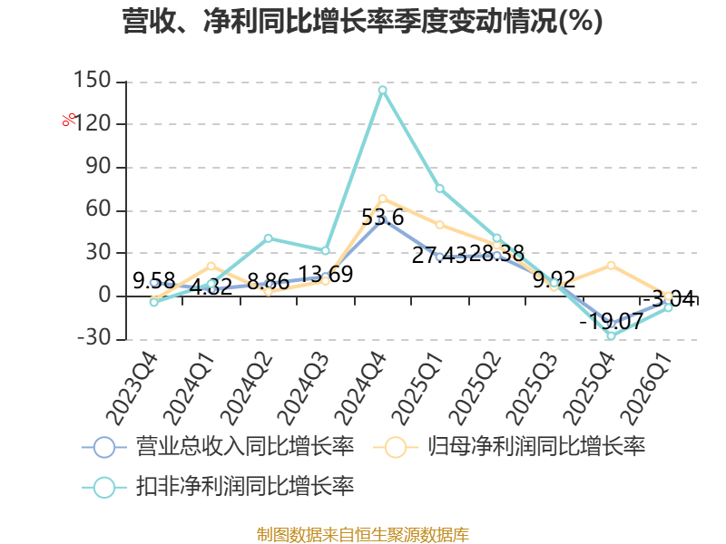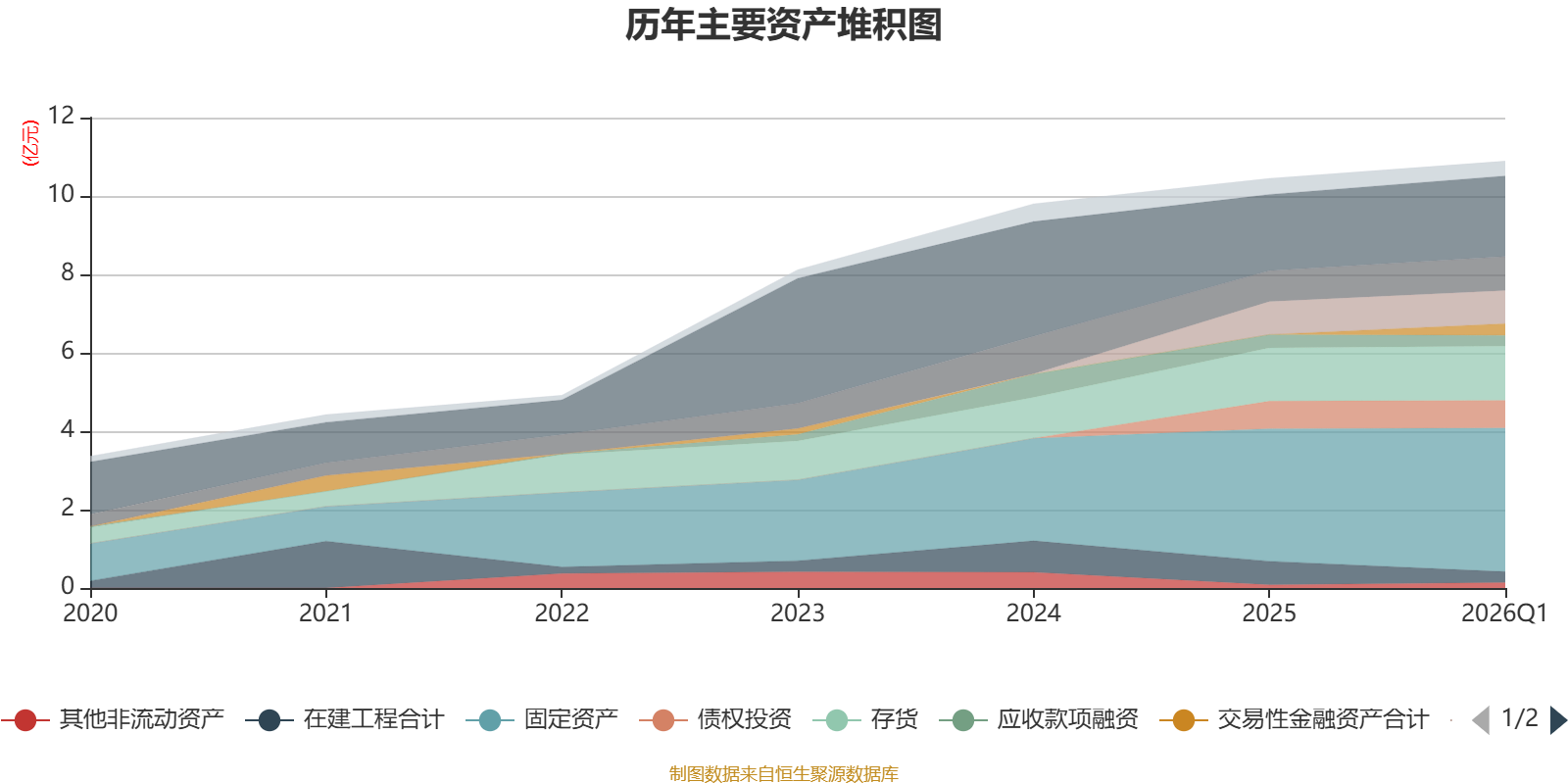 资产重大变化方面,截至2026年一季度末,公司在建工程合计较上年末减少54.4%,占公司总资产比重下降3.26个百分点;交易性金融资产合计占公司总资产的2.77%,上年末为0;固定资产较上年末增加8.41%,占公司总资产比重上升1.3个百分点;应收款项融资较上年末减少20.1%,占公司总资产比重下降0.76个百分点。