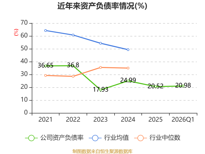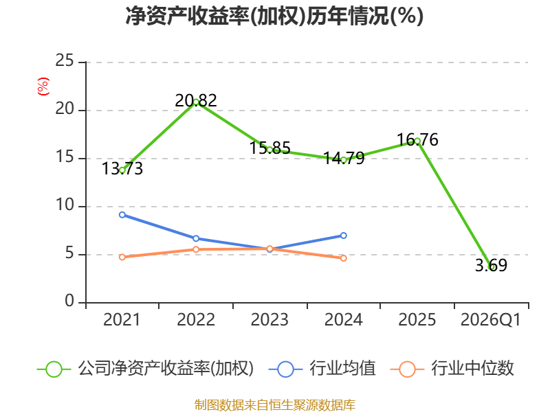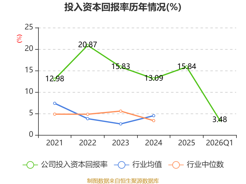 盈利能力方面, 2026年一季度公司加权平均净资产收益率为3.69%,同比下降0.49个百分点。公司2026年第一季度投入资本回报率为3.48%,较上年同期下降0.46个百分点。
