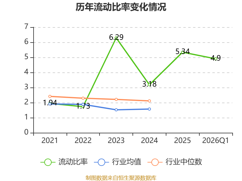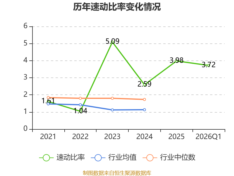 2026年第一季度,公司流动比率为4.9,速动比率为3.72。