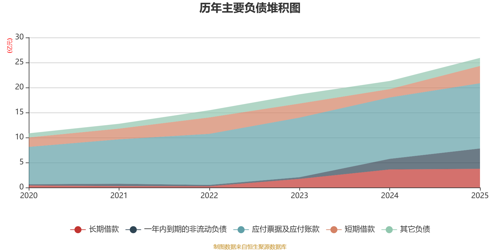 负债重大变化方面,截至2025年末,公司一年内到期的非流动负债较上年末增加91.65%,占公司总资产比重上升4.5个百分点;短期借款较上年末增加107.69%,占公司总资产比重上升4.24个百分点;应付票据及应付账款较上年末增加6.26%,占公司总资产比重下降1.4个百分点;其他流动负债较上年末减少93.43%,占公司总资产比重下降0.84个百分点。