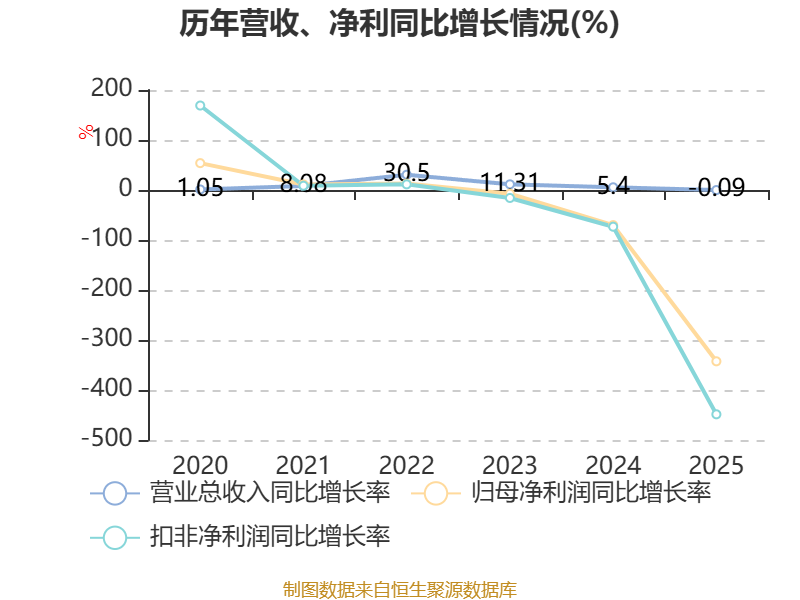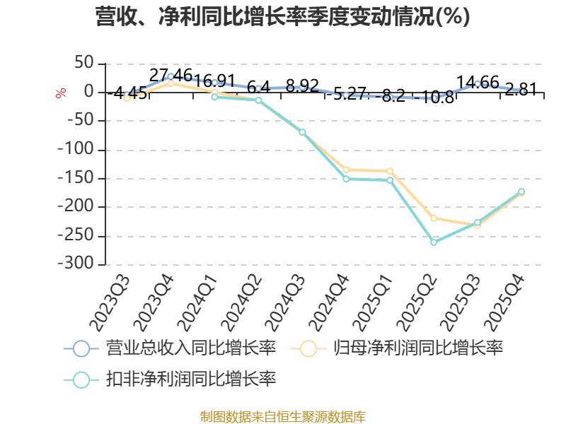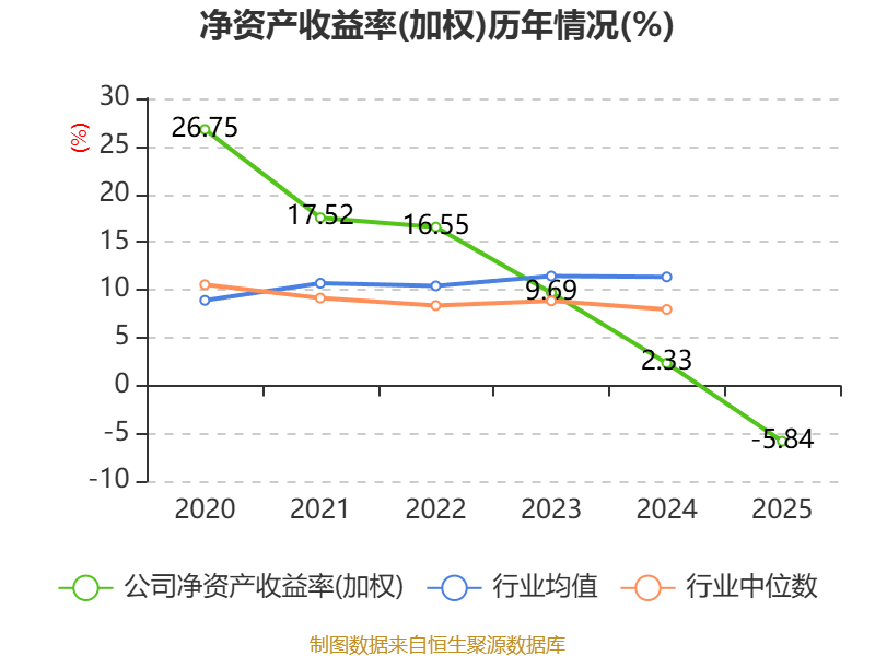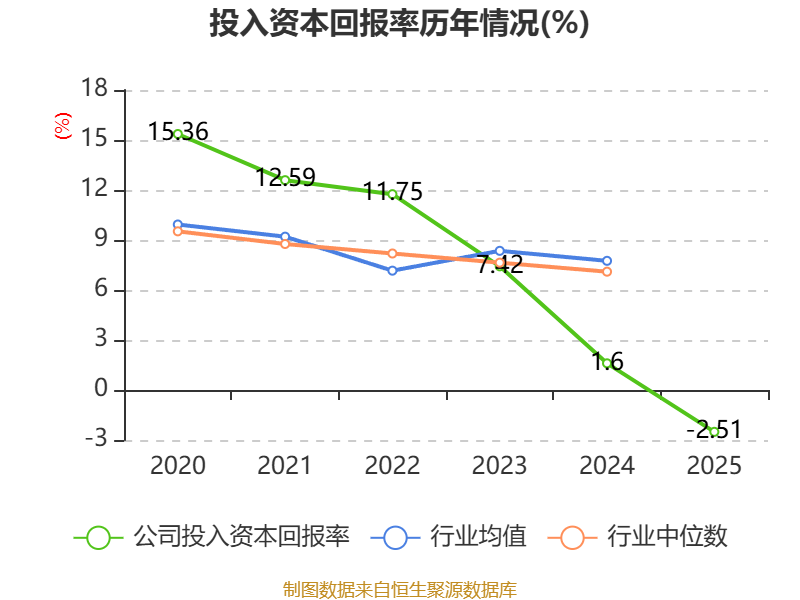 数据显示,2025年公司加权平均净资产收益率为-5.84%,较上年同期下降8.17个百分点。公司2025年投入资本回报率为-2.51%,较上年同期下降4.11个百分点。