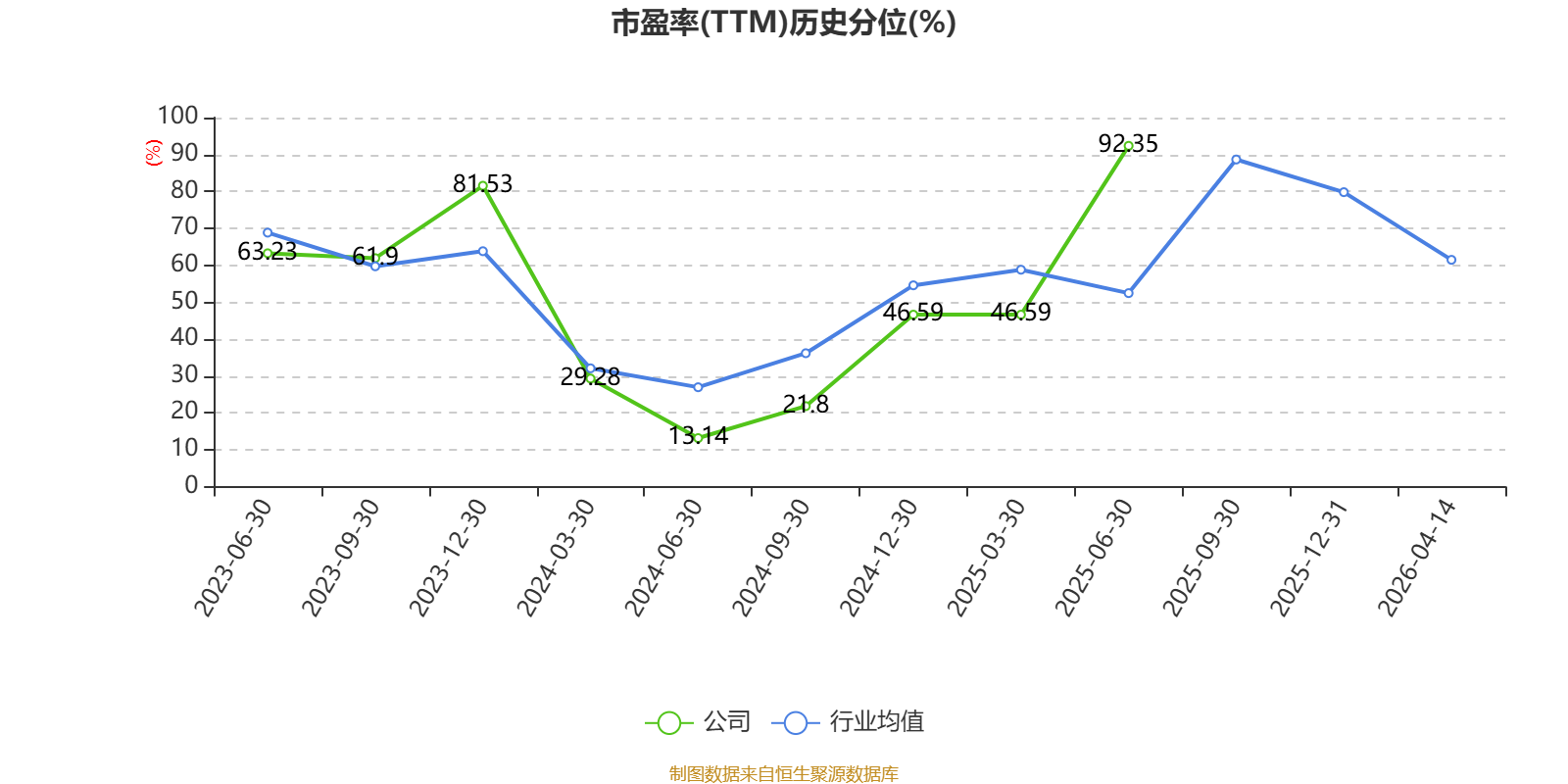 市盈率、市净率为负时,不显示当期分位数,会导致折线图中断。