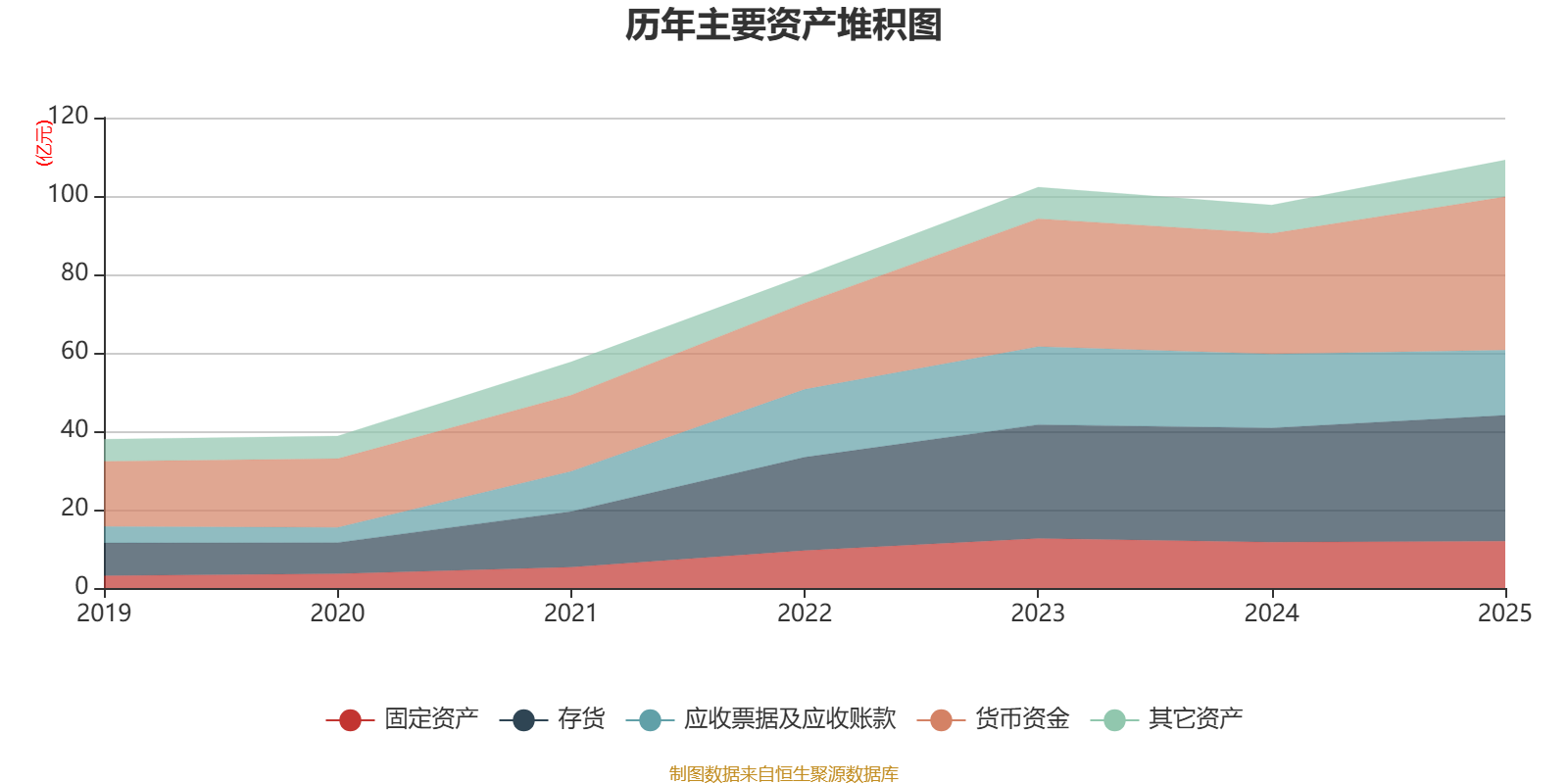 资产重大变化方面,截至2025年末,公司货币资金较上年末增加27.42%,占公司总资产比重上升4.41个百分点;应收票据及应收账款较上年末减少11.96%,占公司总资产比重下降4.1个百分点;固定资产较上年末增加2.37%,占公司总资产比重下降1个百分点;应收款项融资较上年末增加485.99%,占公司总资产比重上升0.72个百分点。