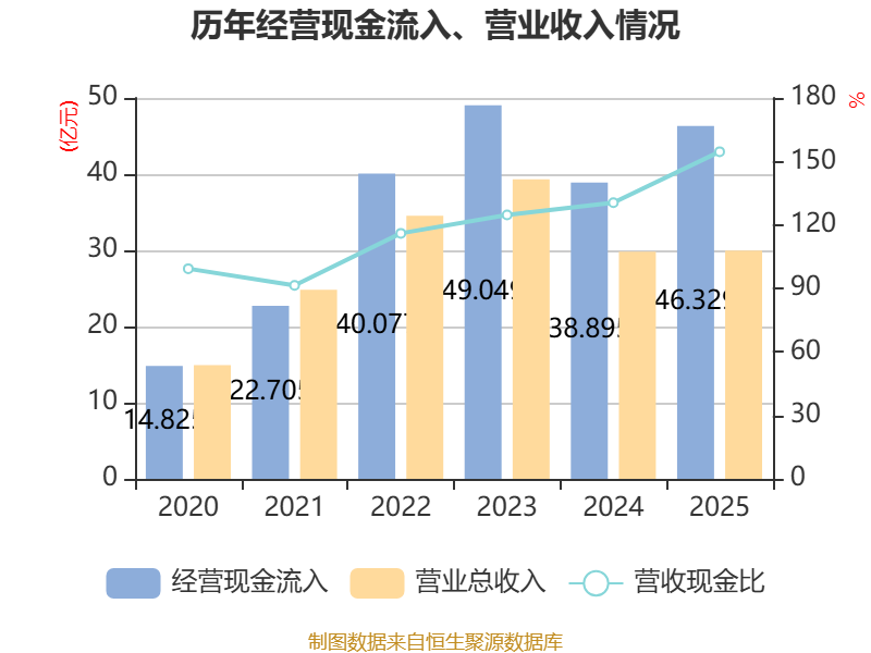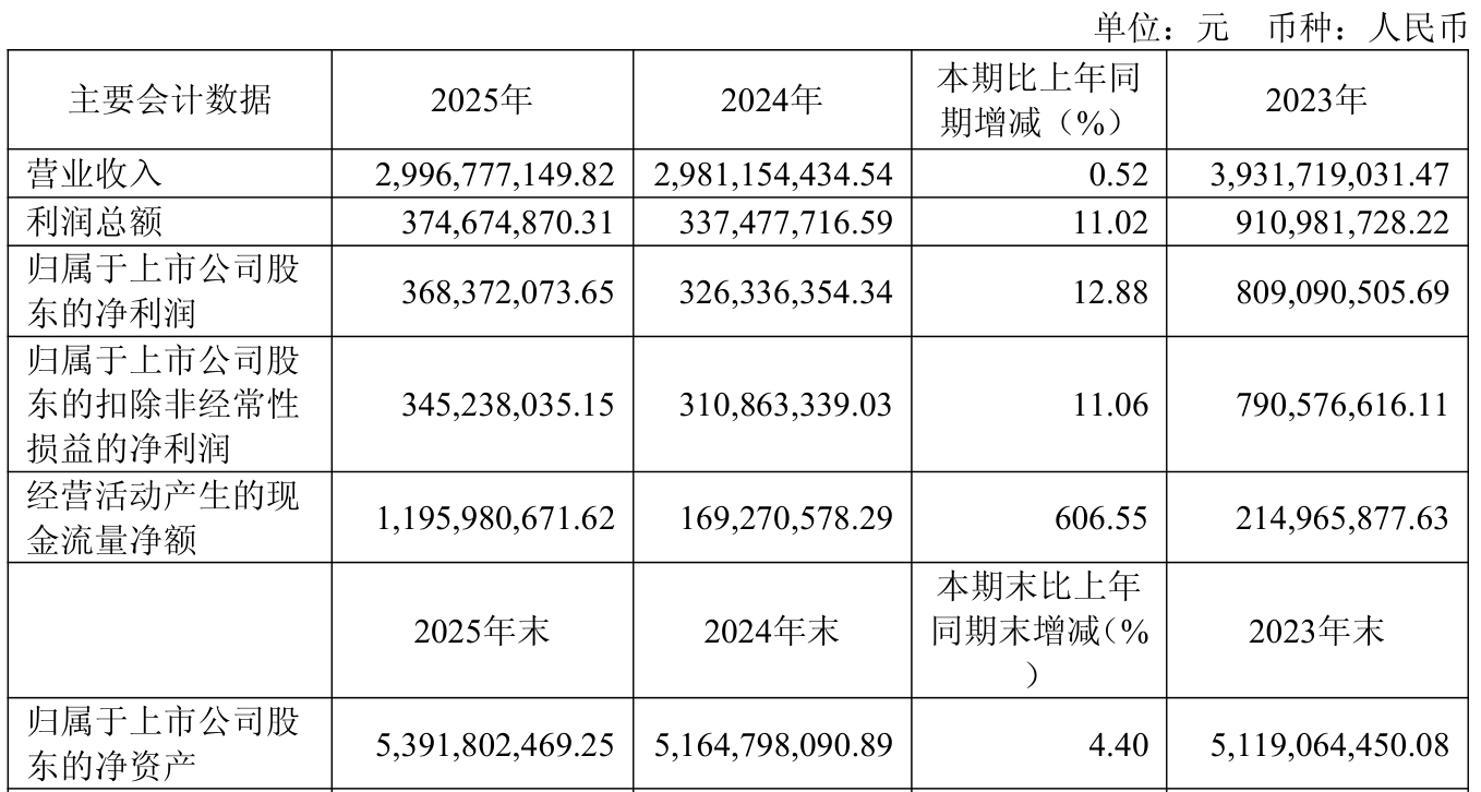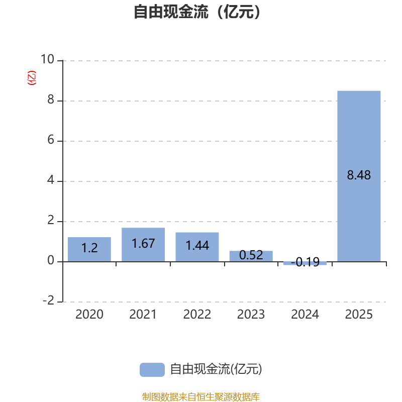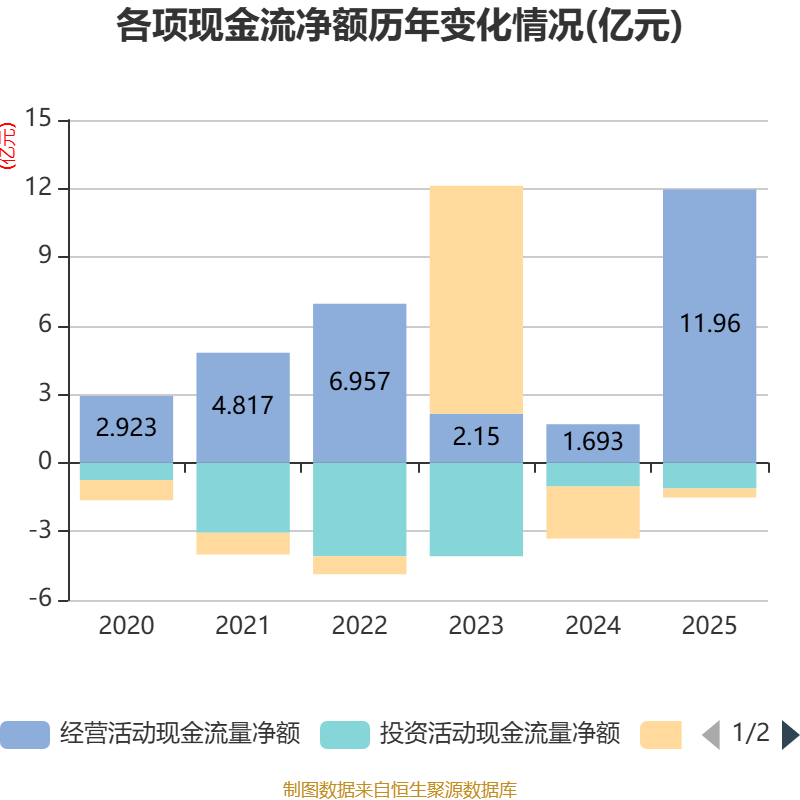截至2025年,公司经营活动现金流净额为11.96亿元,同比增长606.55%;筹资活动现金流净额-3889.53万元,同比增加1.89亿元;投资活动现金流净额-1.12亿元,上年同期为-1.03亿元。