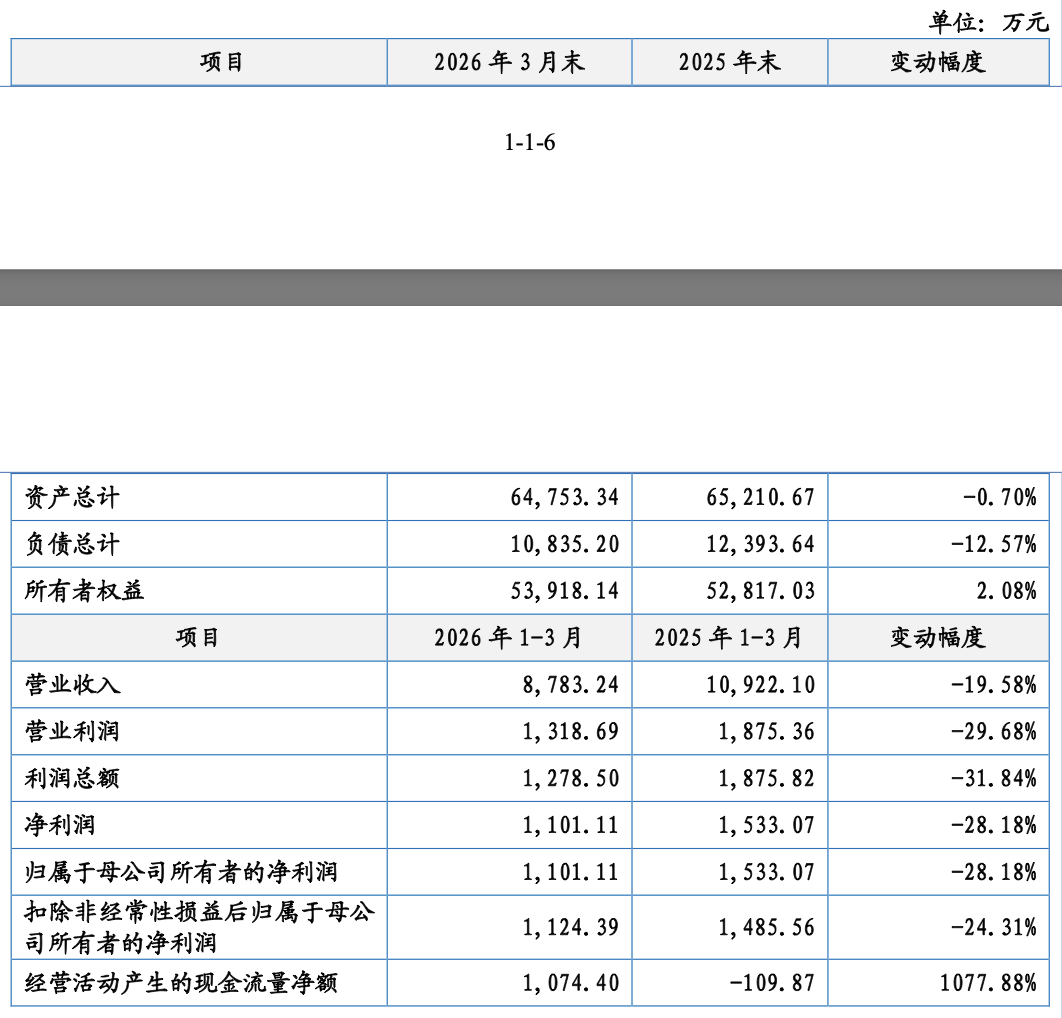 凯达重工在招股书中披露了未经审计的2026年第一季度业绩,公司营业收入8783.24万元,同比下降19.58%;净利润1101.11万元,同比下滑28.18%。