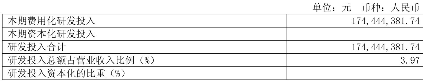 2025年全年,公司研发投入金额为1.74亿元,同比增长17.43%;研发投入占营业收入比例为3.97%,相比上年同期上升0.2个百分点。此外,公司全年研发投入资本化率为0%。