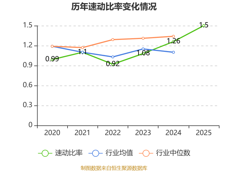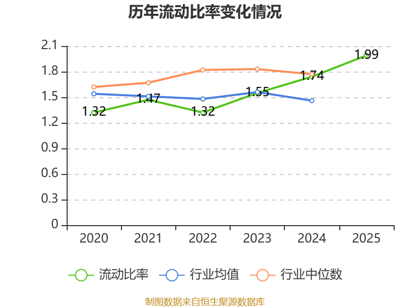 2025年,公司流动比率为1.99,速动比率为1.5。