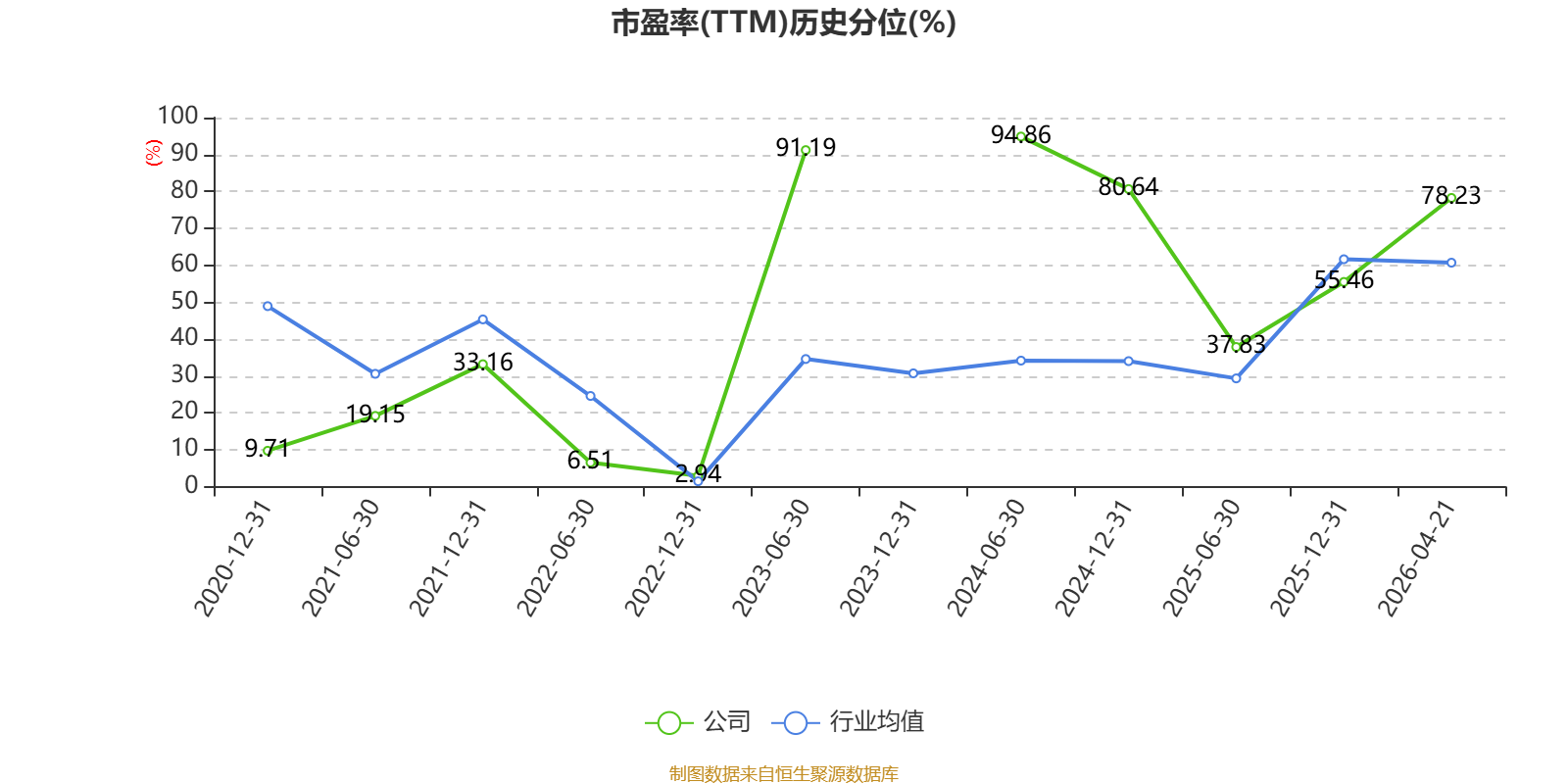 市盈率、市净率为负时,不显示当期分位数,会导致折线图中断。
