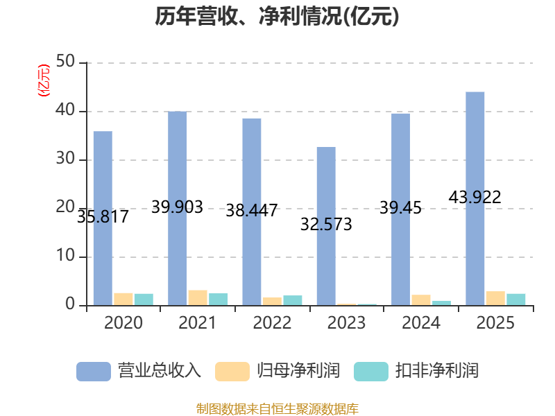 中证智能财讯春秋电子(603890)4月22日披露2025年年度报告。2025年,公司实现营业总收入43.92亿元,同比增长11.34%;归母净利润2.85亿元,同比增长34.82%;扣非净利润2.33亿元,同比增长169.55%;经营活动产生的现金流量净额为3.85亿元,同比下降10.10%;报告期内,春秋电子基本每股收益为0.64元,加权平均净资产收益率为9.38%。公司2025年度分配预案为:拟向全体股东每10股派现2元(含税)。