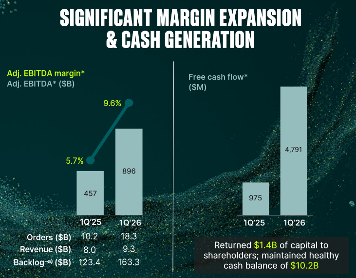 展望2026年,GE Vernova预计全年营收将在445-455亿美元之间,EBITDA约为59亿美元,高于公司此前约53亿美元的指引和华尔街预测的58亿美元。