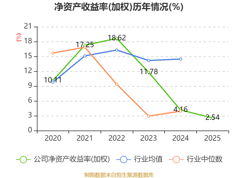 数据显示,2025年公司加权平均净资产收益率为2.54%,较上年同期下降1.62个百分点。公司2025年投入资本回报率为1.68%,较上年同期下降2.17个百分点。