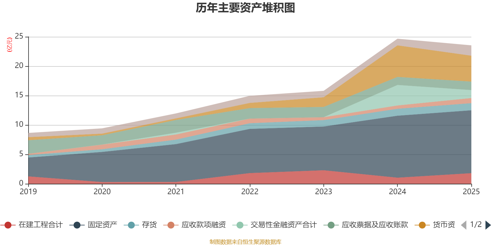 资产重大变化方面,截至2025年末,公司交易性金融资产合计较上年末减少61.06%,占公司总资产比重下降8.36个百分点;在建工程合计较上年末增加74.13%,占公司总资产比重上升3.44个百分点;货币资金较上年末减少18%,占公司总资产比重下降3.06个百分点;固定资产较上年末增加1.56%,占公司总资产比重上升2.74个百分点。