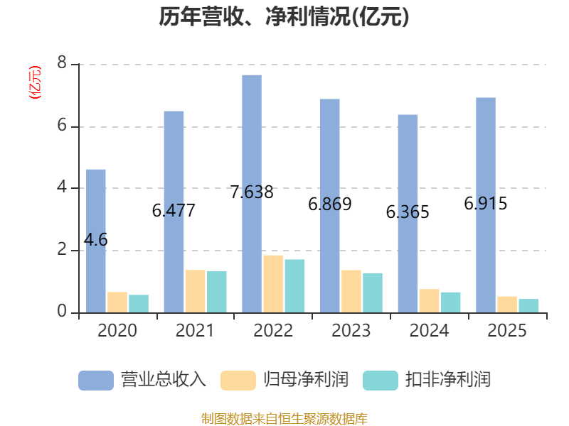 中证智能财讯中瑞股份(301587)4月24日披露2025年年度报告。2025年,公司实现营业总收入6.92亿元,同比增长8.65%;归母净利润5120.71万元,同比下降31.79%;扣非净利润4330.61万元,同比下降32.91%;经营活动产生的现金流量净额为5111.2万元,同比下降0.03%;报告期内,中瑞股份基本每股收益为0.3477元,加权平均净资产收益率为2.54%。