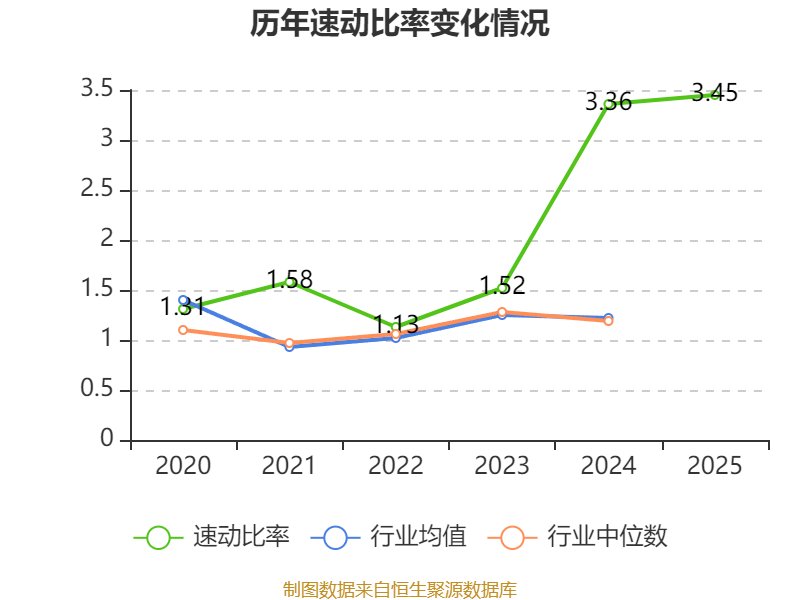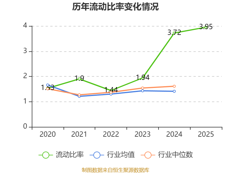 2025年,公司流动比率为3.95,速动比率为3.45。