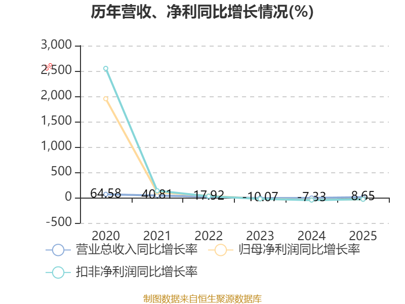 2025年全年,公司研发投入金额为5944万元,同比增长6.56%;研发投入占营业收入比例为8.6%,相比上年同期下降0.16个百分点。此外,公司全年研发投入资本化率为0%。