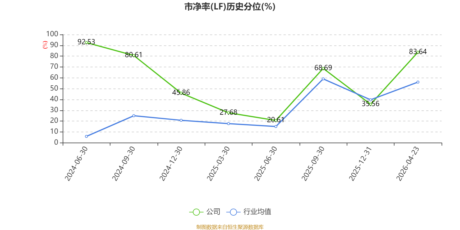 市盈率、市净率为负时,不显示当期分位数,会导致折线图中断。