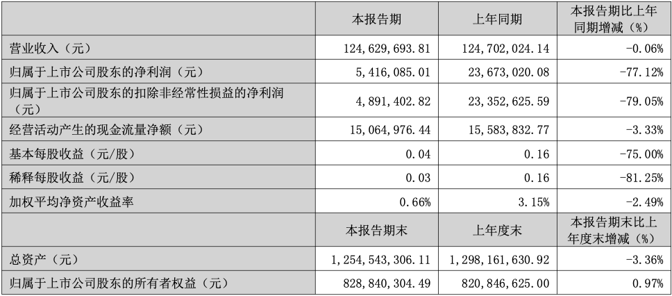 同日,德固特还公告,公司2026年第一季度实现营业收入1.25亿元,同比下降0.06%;归属于上市公司股东的净利润541.61万元,同比减少77.12%;经营活动产生的现金流量净额1506.50万元,同比下降3.33%。